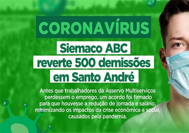 O SIEMACO ABC também assinou um Termo Aditivo com o SEAC ABC, pautado nas condições da MP 936, evitando que ocorram demissões em massa na categoria. Com isso, se acharem necessário, as empresas poderão reduzir em 25, 50 ou 70% as jornadas e salários dos seus colaboradores, desde que comuniquem com antecedência o sindicato.