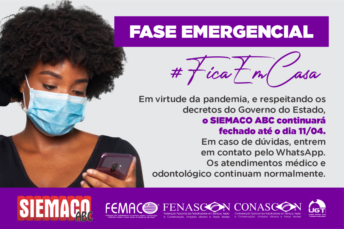 Em razão da recente evolução no número de casos de pessoas infectadas pela Covid-19, bem como, buscando respeitar os decretos do Governo do Estado de São Paulo e demais orientações dos principais órgãos de saúde do país, o Siemaco ABC informa que a sede permanecerá fechada até o dia 11 de abril.